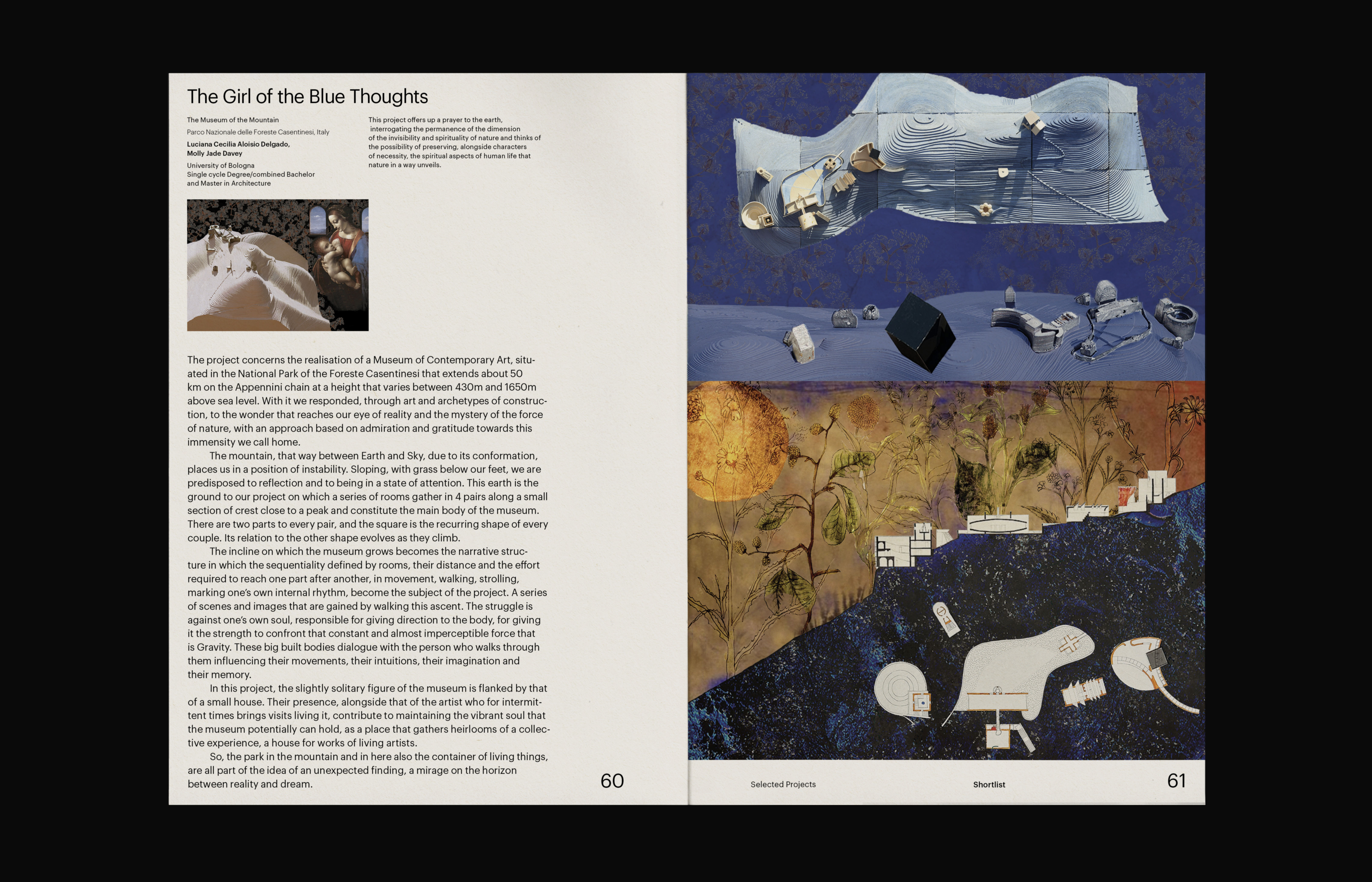 (ES) Este libro reúne todos los proyectos nominados en la edición de 2025, destacando con especial énfasis los preseleccionados, finalistas y ganadores. Esta colección de obras fue exhibida en la 19ª Exposición Internacional de Arquitectura de la Biennale di Venezia, como Evento Colateral oficial, del 10 de mayo al 23 de noviembre de 2025.